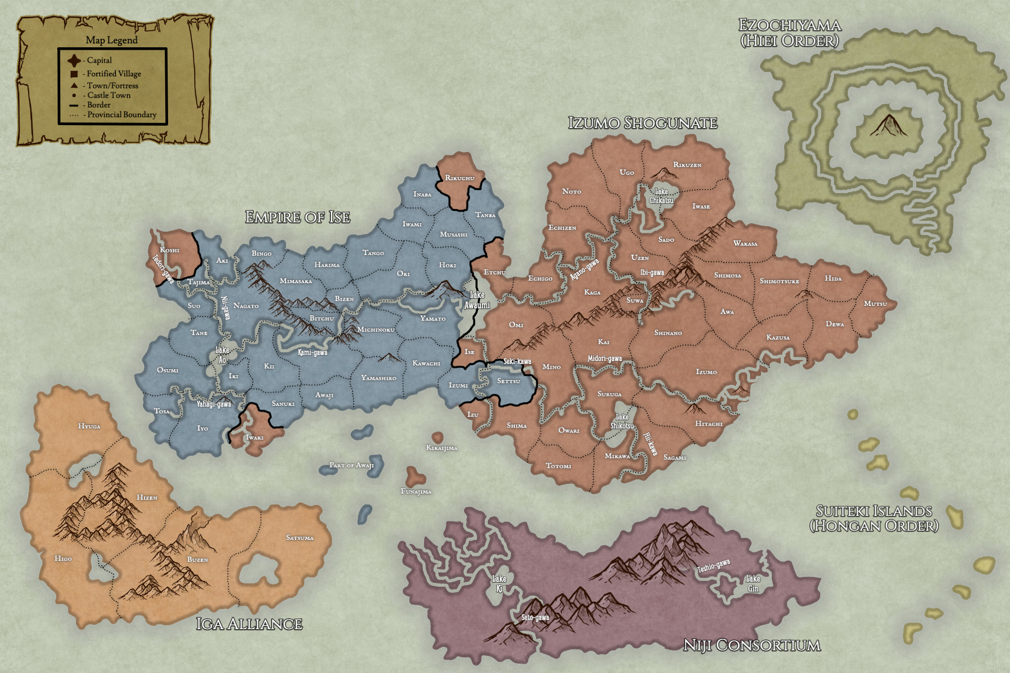 Let us step, for a time, out of Enayra, and into another land, on another world: the land of Yamato. A land of the kami, spirits both minor and divine that not only walk the earth, but infuse it with their power. A land of four realms tethered to one another.